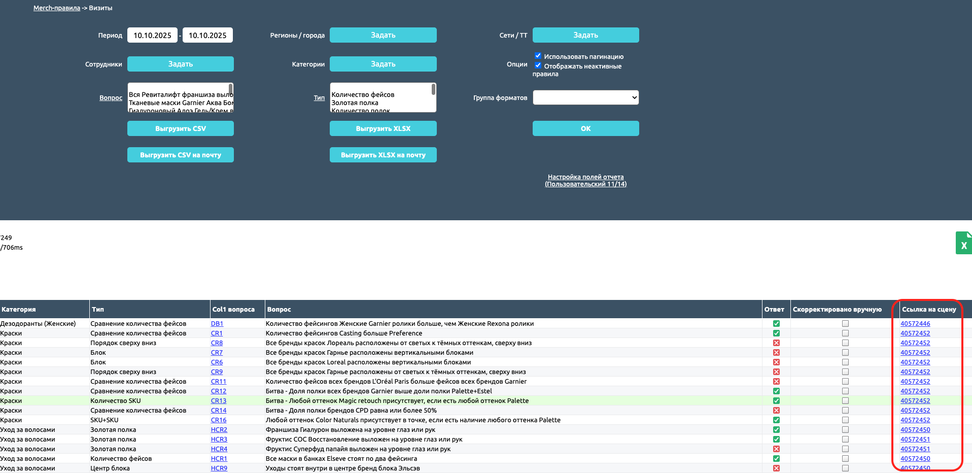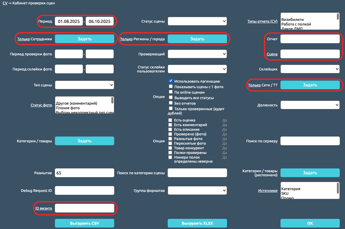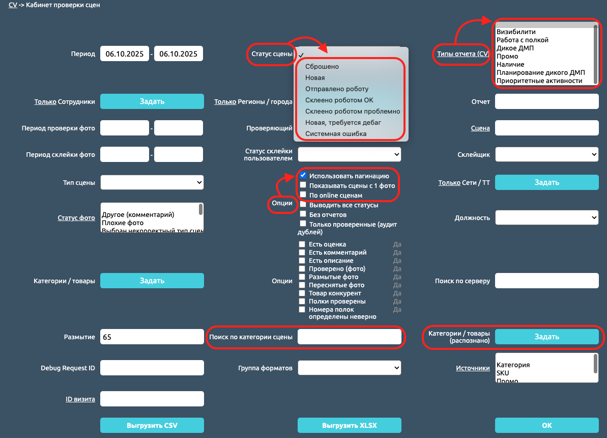 В кабинете проверки сцен доступен широкий набор фильтров, позволяющий настроить точность поиска нужной сцены или сцен: