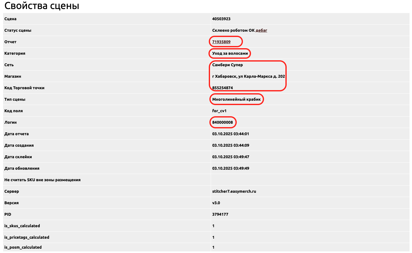 В данной части информации о сцене располагается перечень распознанных товаров на сцене: их цена, количество и другие показатели.