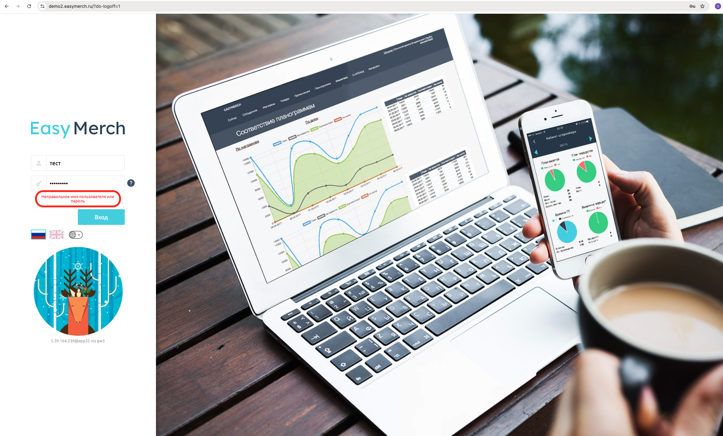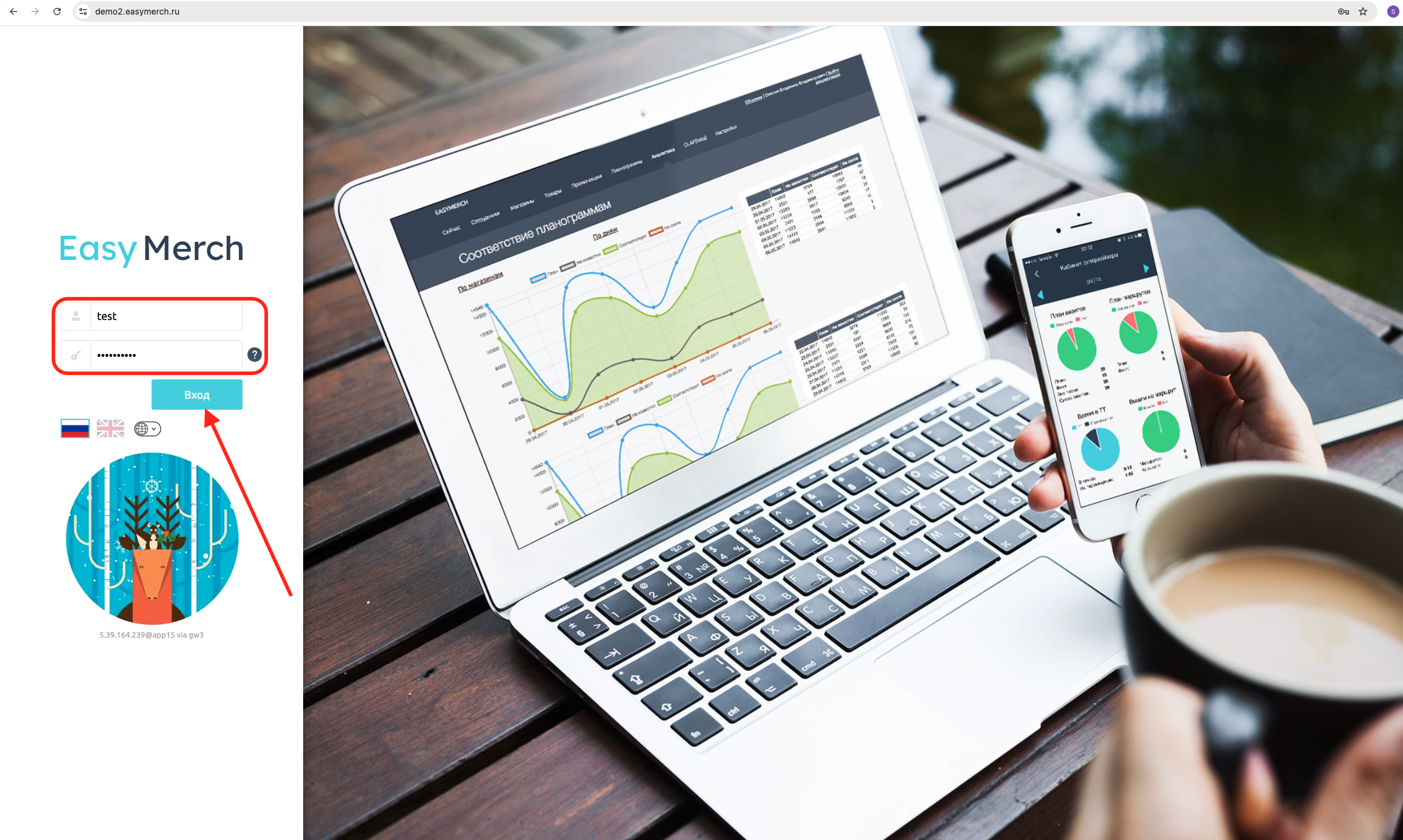 Введите в поисковой строке наименование сайта с указанием Вашего сервера перед «.easymerch.ru» или перейдите по ссылке