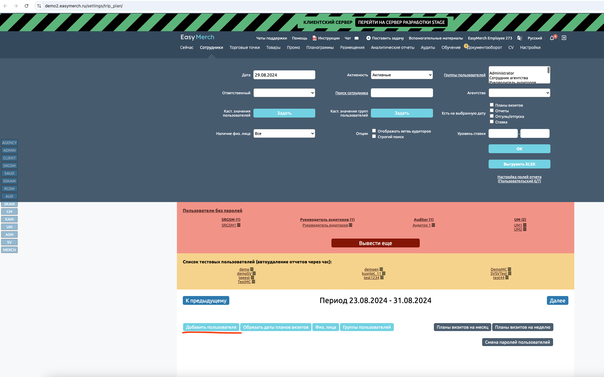 Для создания пользователя, вам необходимо перейти на страницу Сотрудники и выбрать пункт «Добавить пользователя»