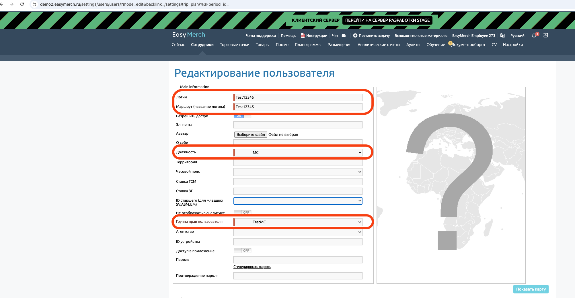 Далее вам необходимо заполнить данные о сотруднике. Красным выделены обязательные для заполнения пункты