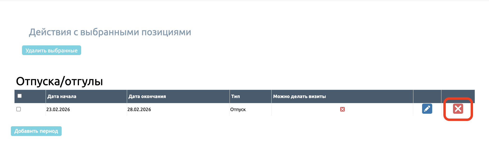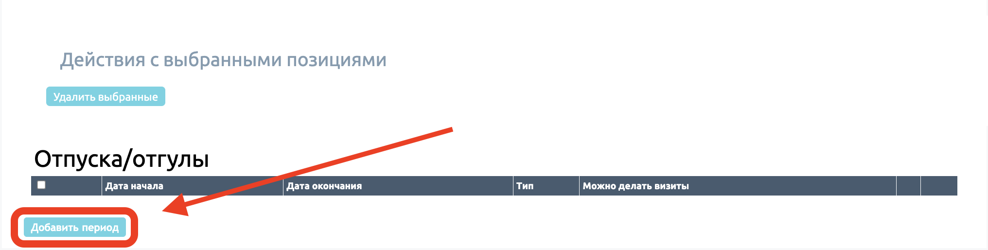 Там же вы можете добавить период отпуска/отгула, нажав на кнопку «Добавить период»